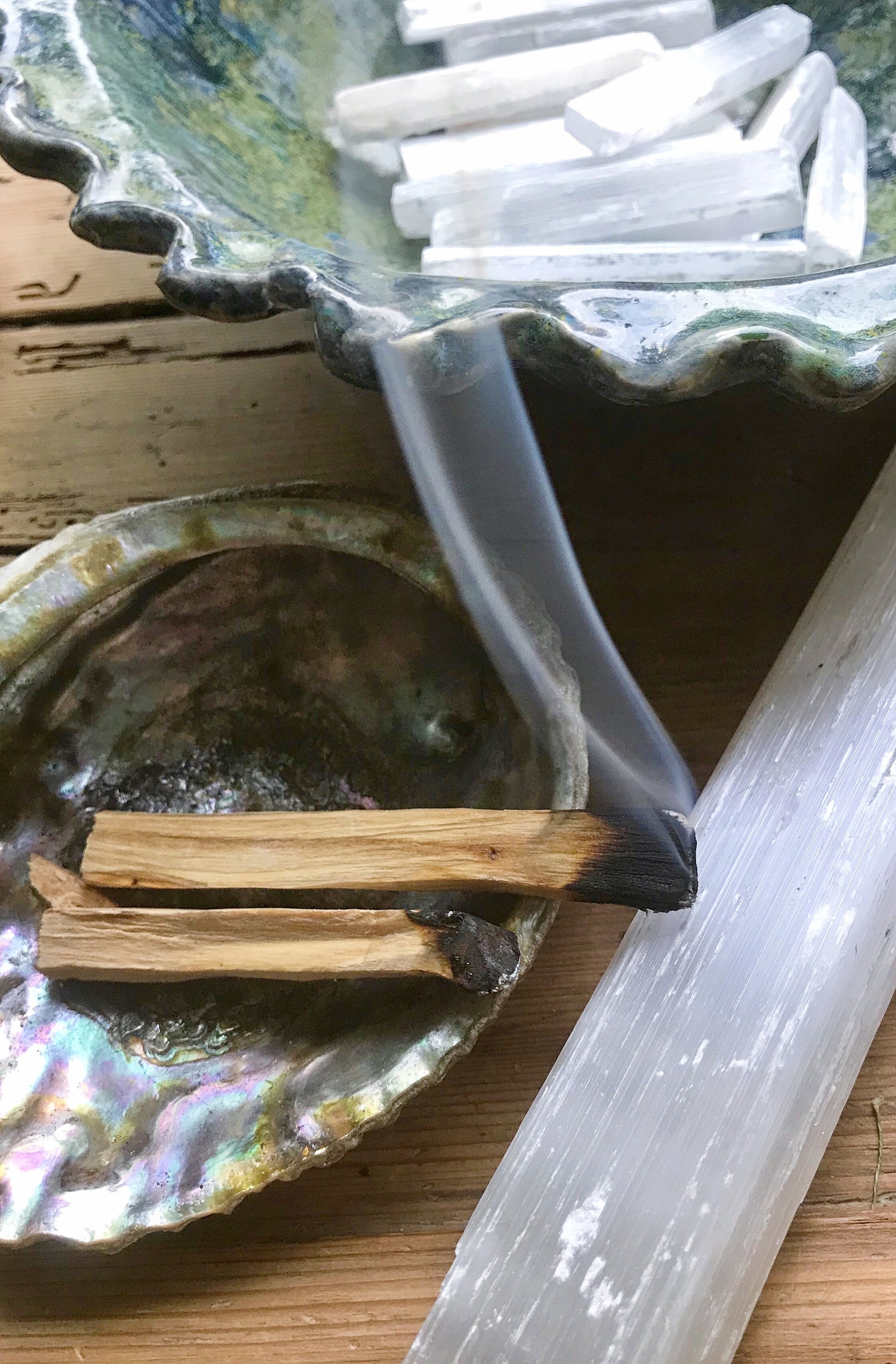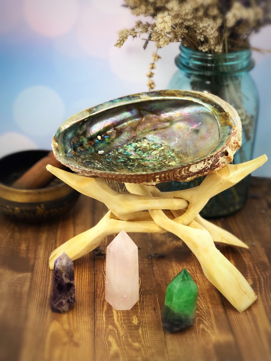 Your Abalone shell is accompanied by a natural wood stand and a feather. Your abalone shell can hold your smudge or incense as it burns without fear.