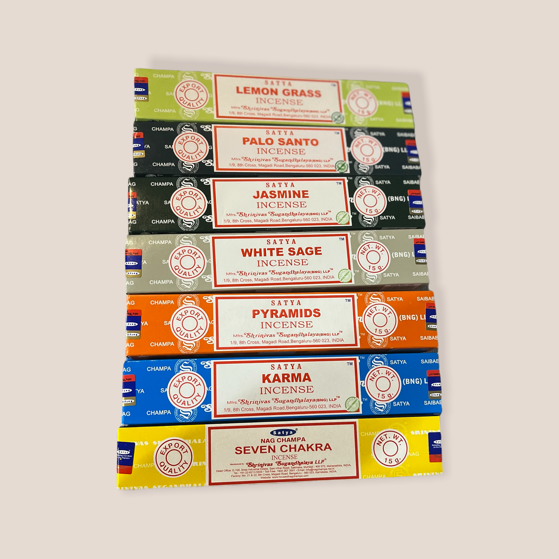 Satya brand is our favored out of house brand Masala incense. Each 15g pack contains around 12-15 incense sticks (determined by weight), Each incense stick is individually hand rolled in the high quality oils so each stick can vary slightly in its thickness.