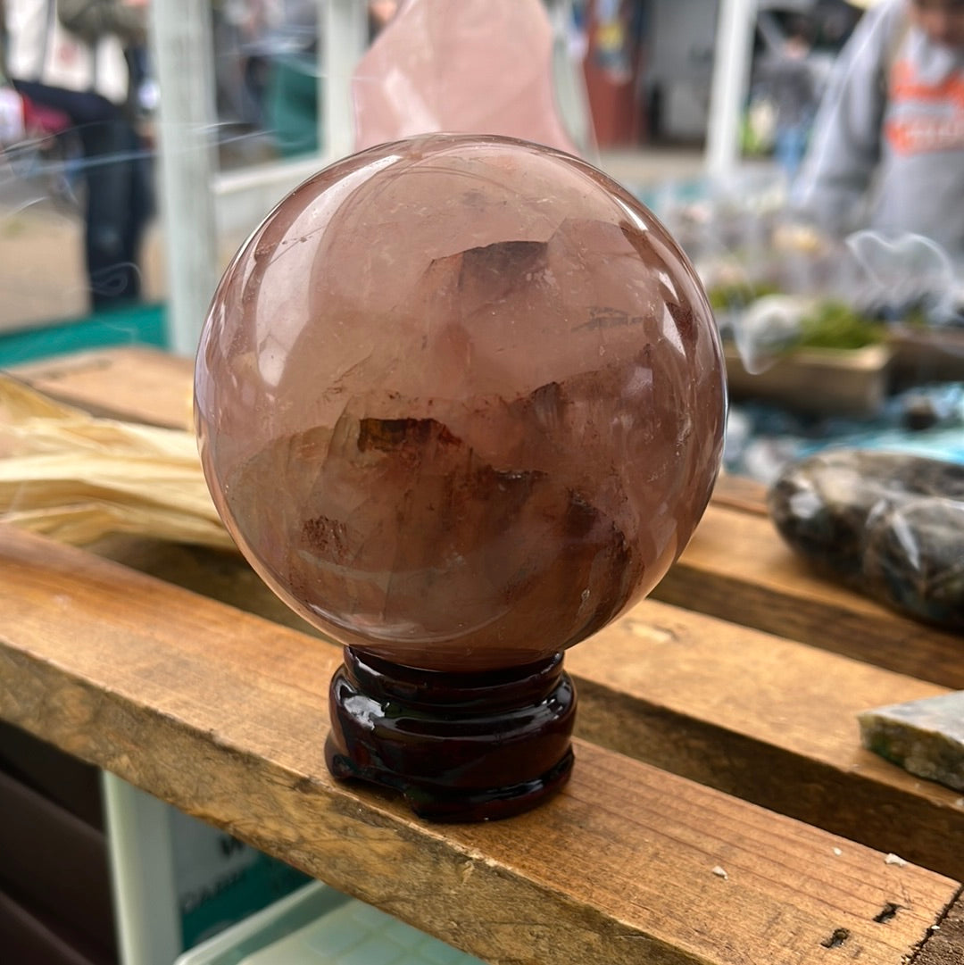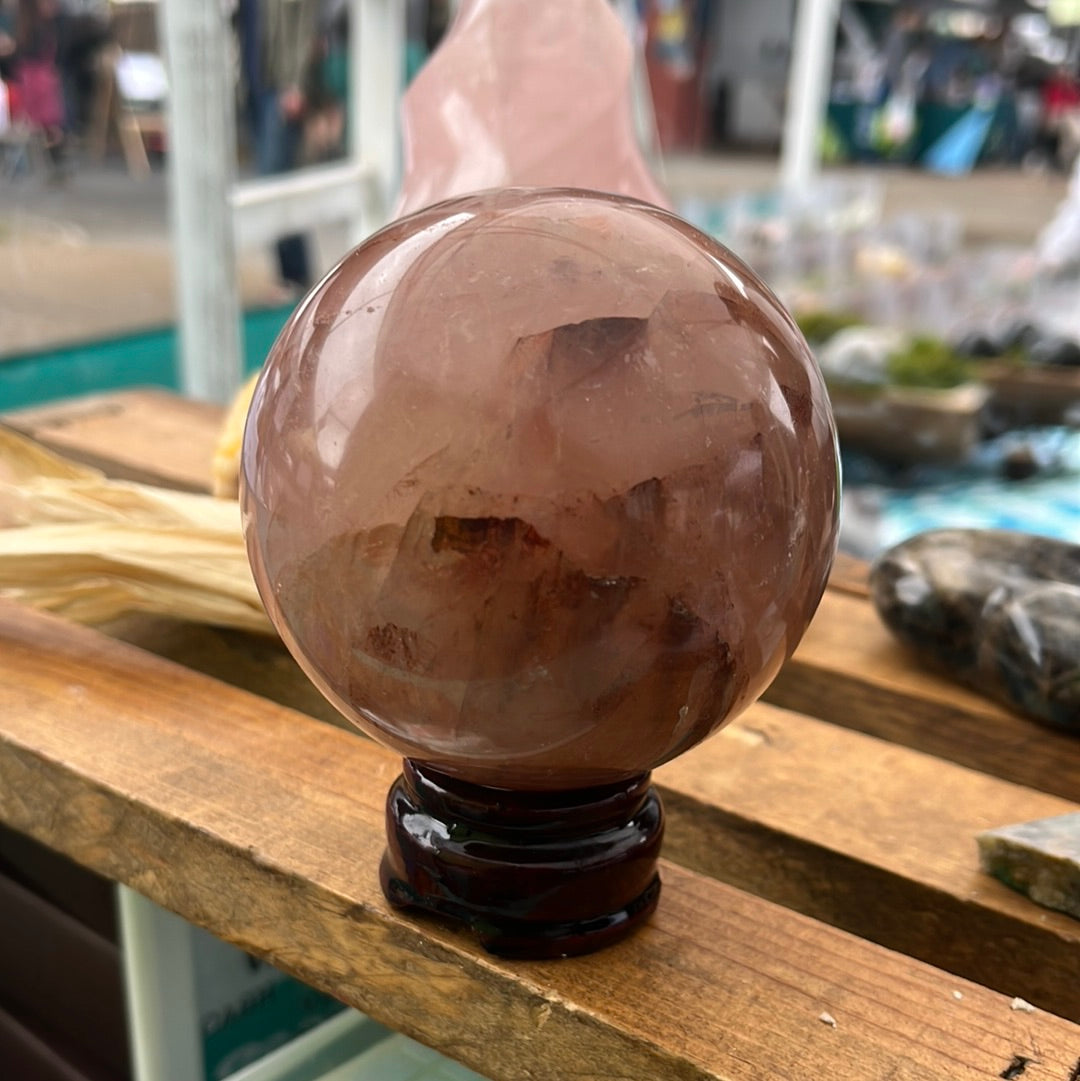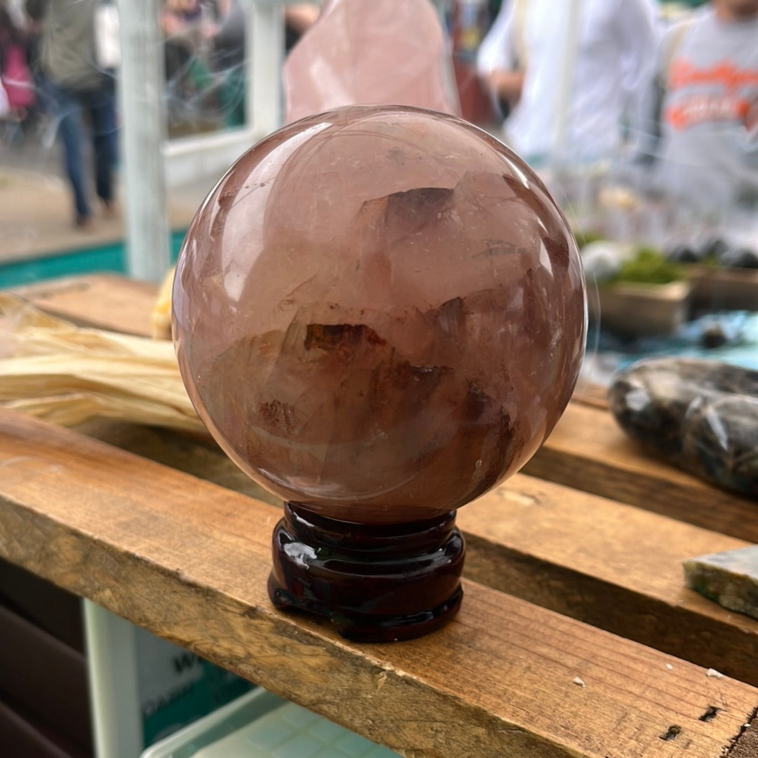 Hematoid also known as Fire Quartz or Harlequin Quartz is Quartz with lepidocrocite or hematite inclusions. Therefore it contains the amplification of quartz, the balance and stability of hematite and the negativity block of lepidocrocite.