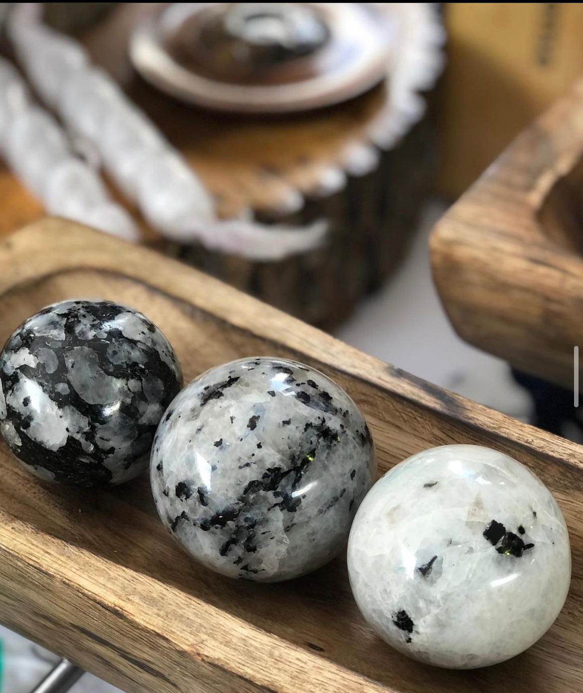 Listing is for one (1) 56mm-58mm Rainbow Moonstone Sphere stone.