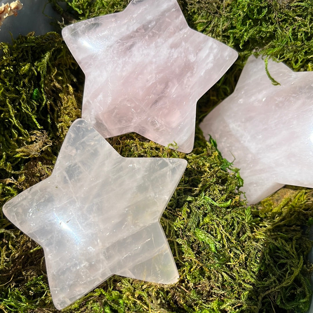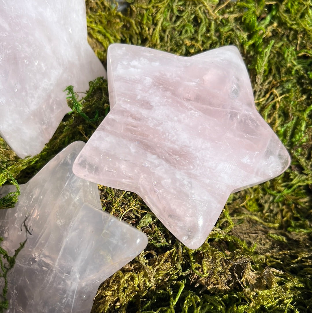 Natural Rose Quartz carved star. Star-shaped gemstones help call the celestial energies to us when we do healing and energy work.